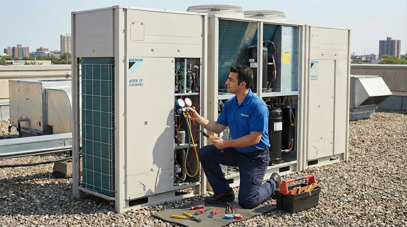 UYARI: Daikin VRV sistemleri yüksek teknoloji barındıran kontrol kartlarına ve inverter kompresörlere sahiptir. Yetkisiz kişilerin "ev tipi klima" mantığıyla yapacağı müdahaleler, anakart yanmalarına ve yüksek maliyetli arızalara neden olabilir. Mutlaka yetkili teknik destek talep ediniz.