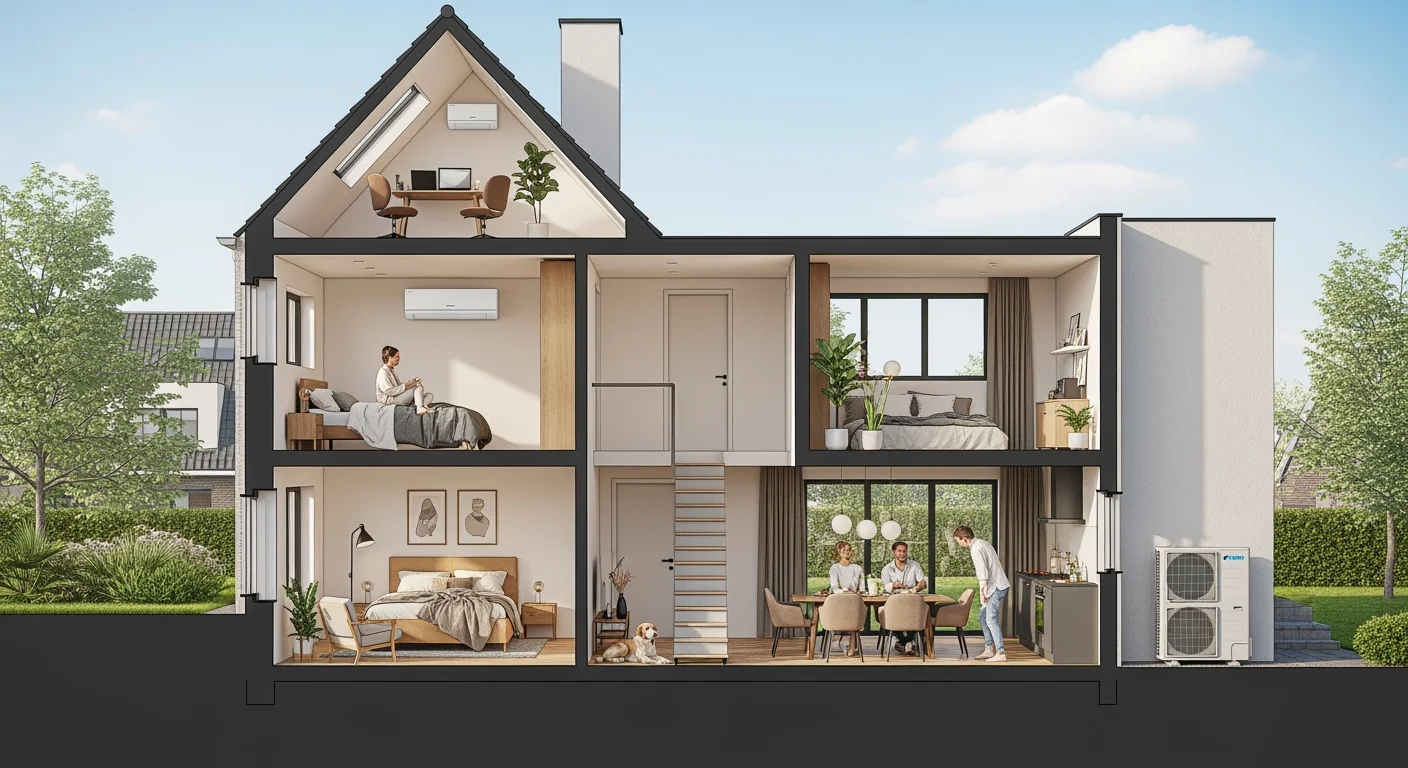 - Geniş Borulama Mesafesi: 1000 metreye kadar toplam borulama uzunluğu ve 90 metreye varan yükseklik farkı ile en zorlu mimari projelerde bile esneklik sağlar.