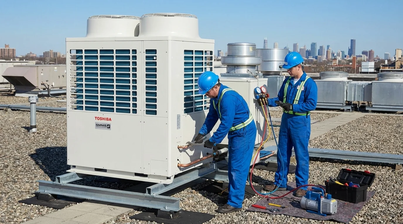 Montaj sürecinde Toshiba’nın yüksek standartlarına (Triple-A) uygun olarak; azotlu kaynak, vakumlama ve sızdırmazlık testlerini titizlikle uyguluyoruz. Hatasız bir kurulum, cihazın ilk günkü sessizliğini ve verimliliğini koruması için temel şarttır. Türkiye'nin 81 iline yayılmış operasyon gücümüzle en karmaşık VRF klima projelerini anahtar teslim tamamlıyoruz.