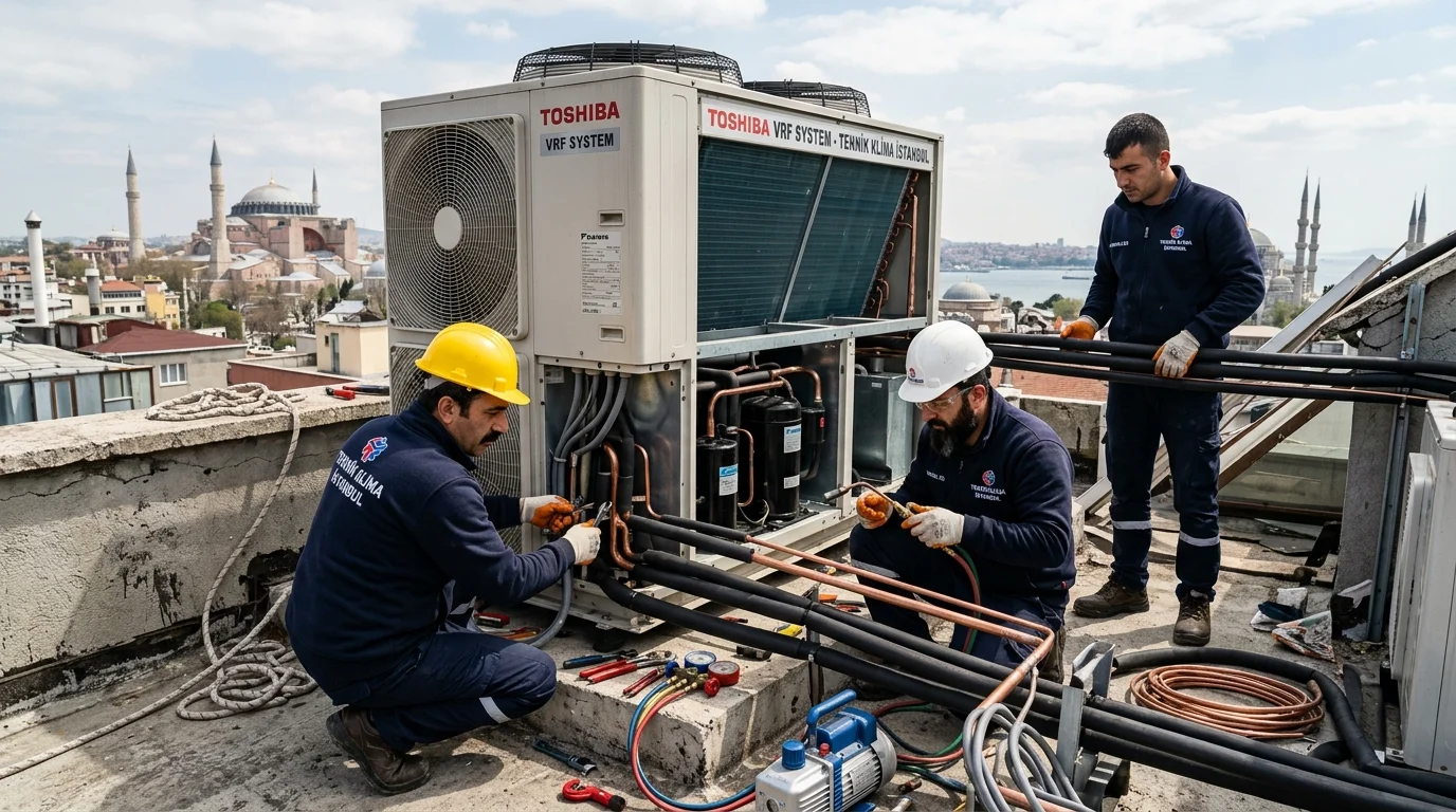 Merkezi bir iklimlendirme sisteminin kalitesi, lüks lobi tavanlarının veya şık odaların arkasında gizlenen o görünmez işçilikle ölçülür. Operasyonun ilk ve en zorlu adımı, çatıdaki devasa dış motor ile odalardaki onlarca iç cihazı birbirine bağlayan bakır boru hatlarının çekilmesidir. Bu hatlar, binanın büyüklüğüne göre bazen bir kilometreyi aşan uzunluklara ulaşabilir. Tam bu noktada, sıradan tesisatçılık ile ileri düzey mekanik işçilik birbirinden ayrılmak zorundadır.